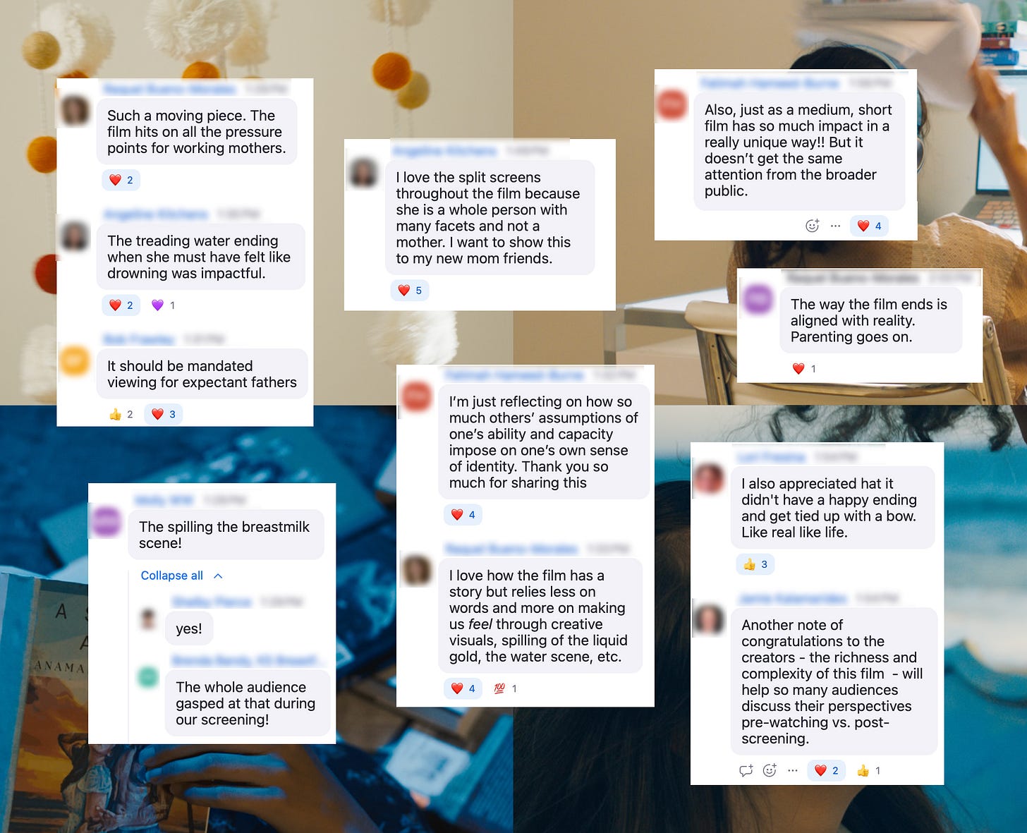 Within two weeks of Emily’s outreach, things started to snowball. “It became a Fibonacci sequence,” Richa said. “Each connection built on the last, and it just kept growing.” The first person who responded was Vicki Shabo at New America’s Better Life Lab. She became a crucial partner — someone with a deep history and network among Paid Family Medical Leave advocates, who also believes in the power of narrative to shape culture and influence meaningful policy change. They started with a virtual screening and discussion with leading national-level advocates and maternal mental health experts — “the Braintrust,” as it was branded. That led to more screenings and state-level Braintrust events. And now Richa and Emily are screening the film and speaking at maternal health conferences as word of mouth about the film continues to spread.