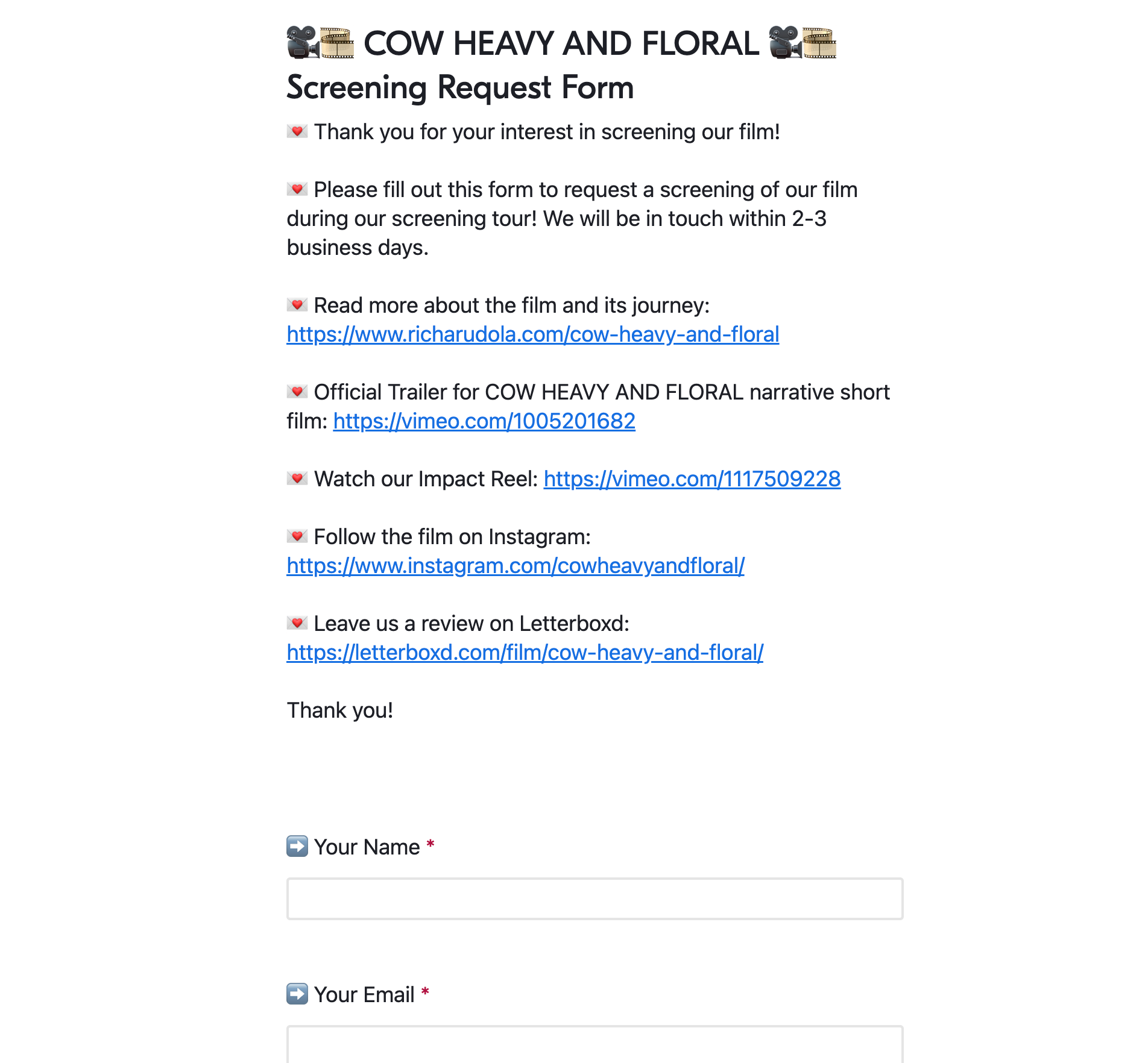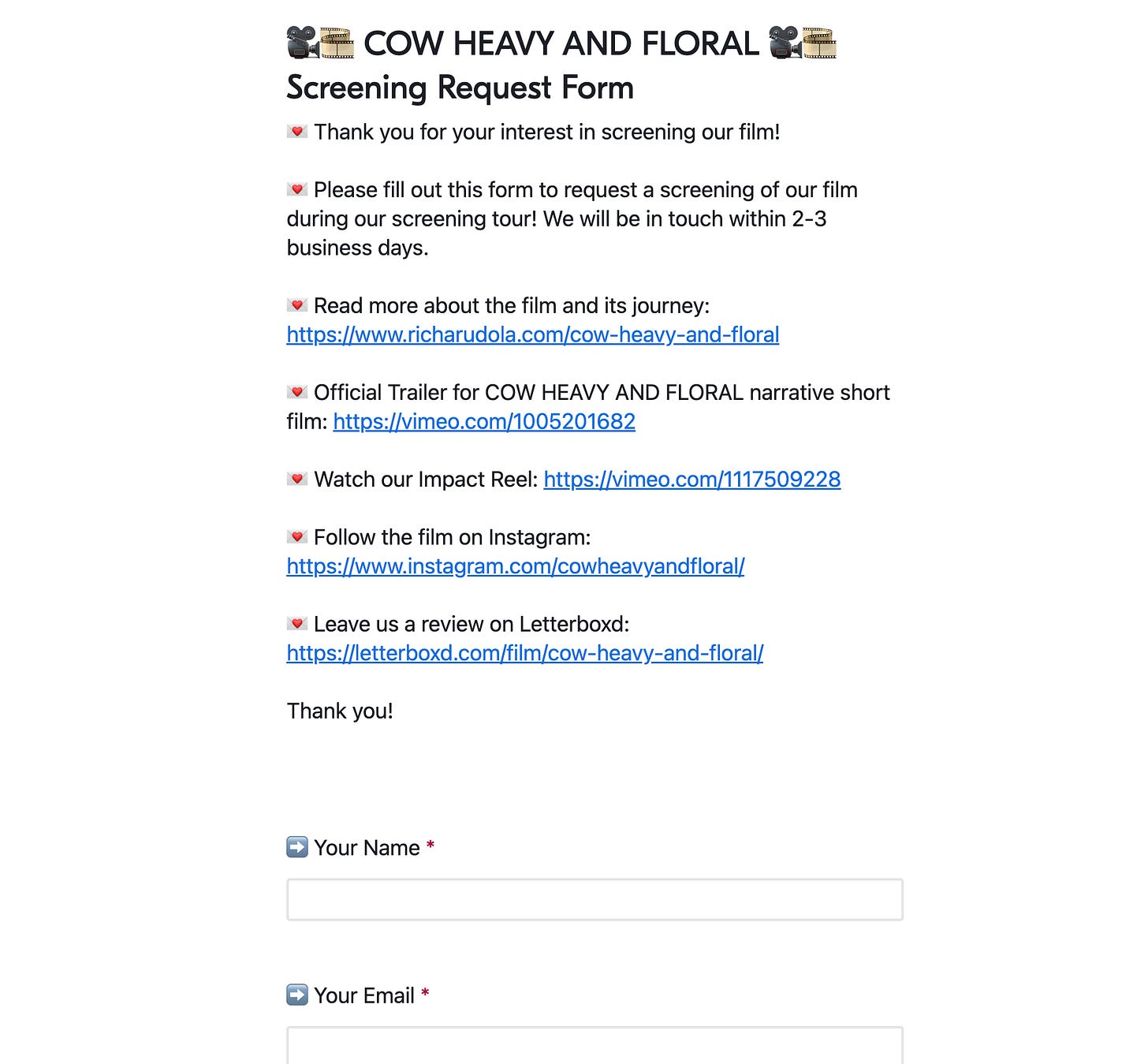 The festival circuit gave Cow Heavy And Floral credibility and press hooks. But the bits that are actually creating change are happening in conference rooms, advocacy convenings, and around lunch and dinner tables. And that work is also starting to get recognized. It has even led to an invitation from Ted Hope to speak on a 2025 Cannes American Pavilion panel about CHAF’s approach to audience-building.